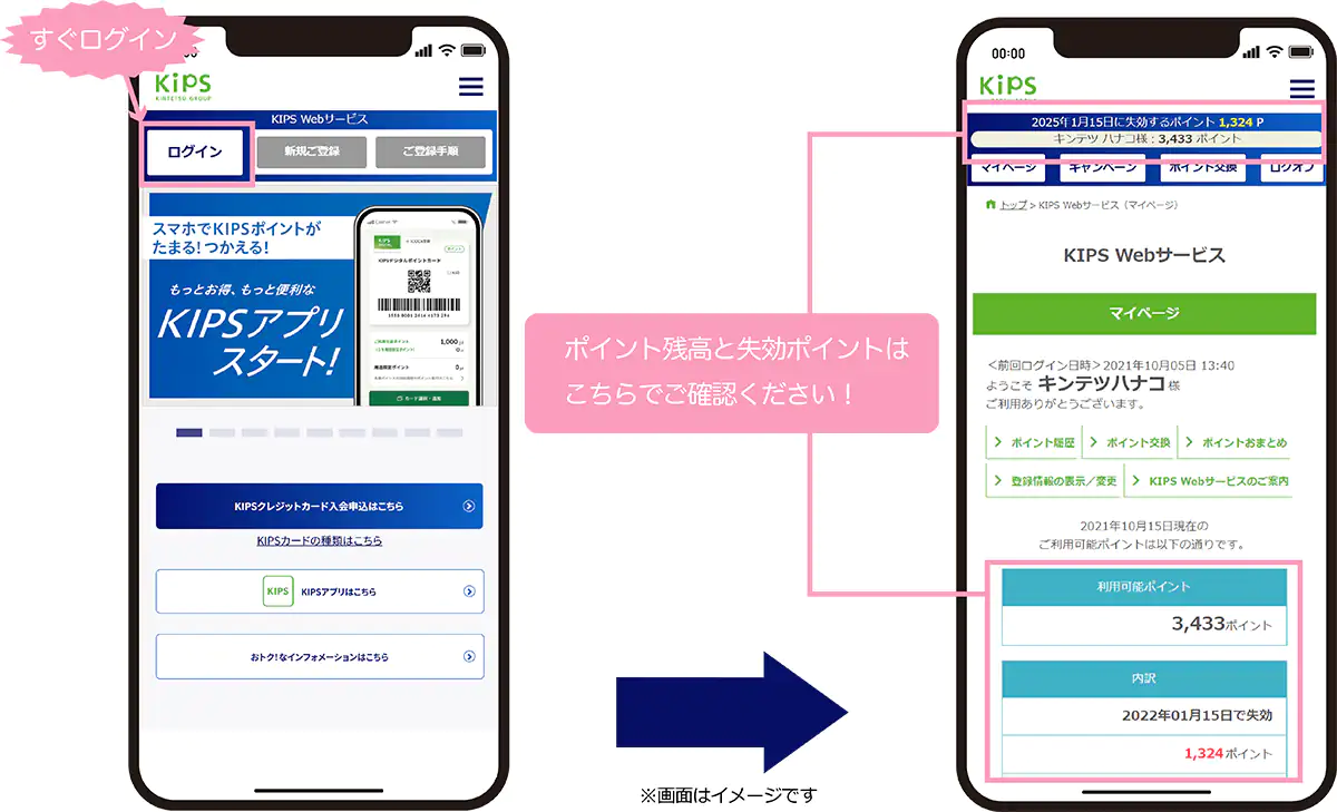 - ※有効期限を過ぎたKIPSポイントは失効し、ご利用になれません。